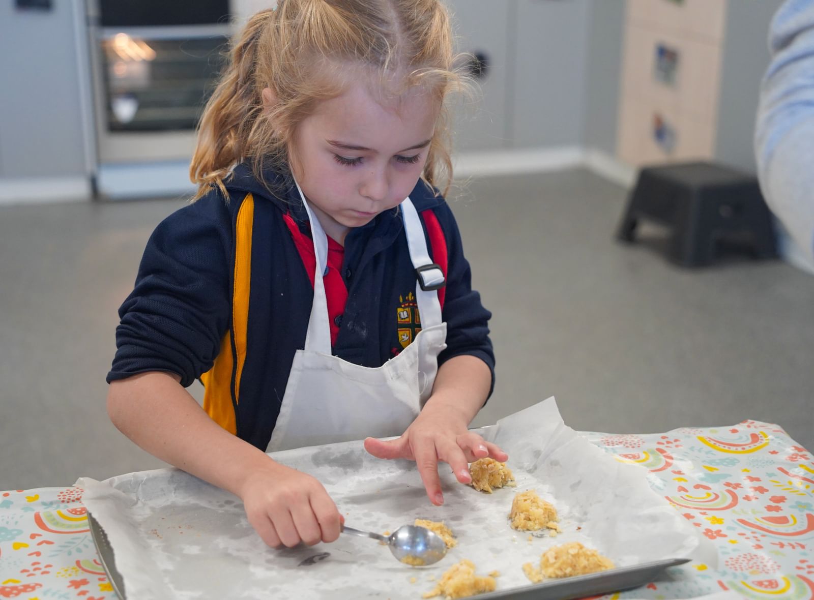From there, it was into the kitchen, where the excitement continued. With the support of our wonderful parent volunteers, students measured, mixed and shaped their biscuit dough with great care. While the treats baked and cooled, they turned their attention to decorating gift labels, adding heartfelt drawings and messages to make each gift truly special.