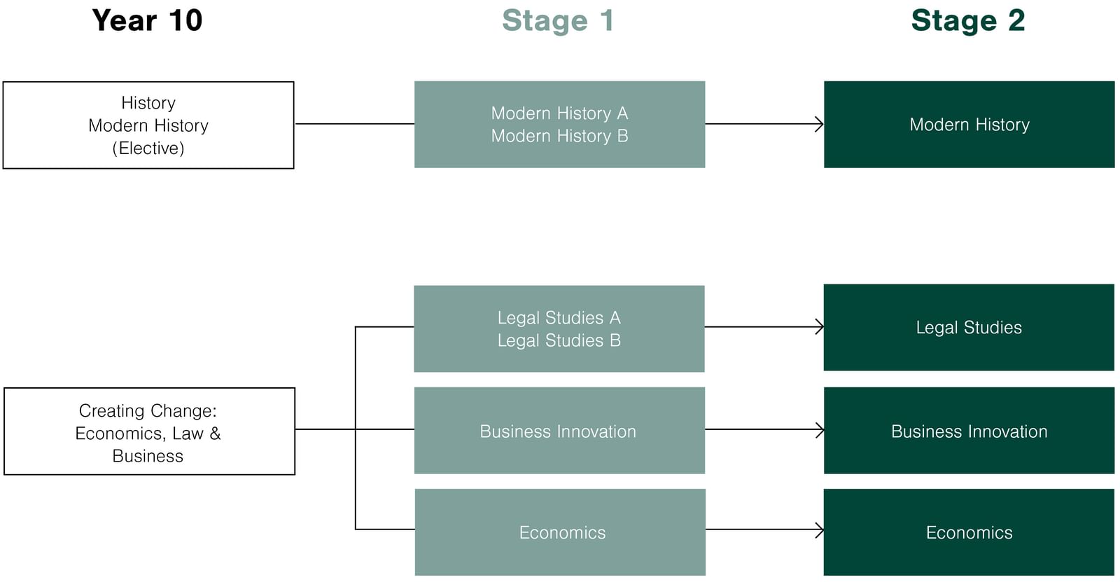 Successful completion of one semester of Stage 1 History, Legal Studies, Economics or Business Innovation is recommended in order to study that Stage 2 subject,